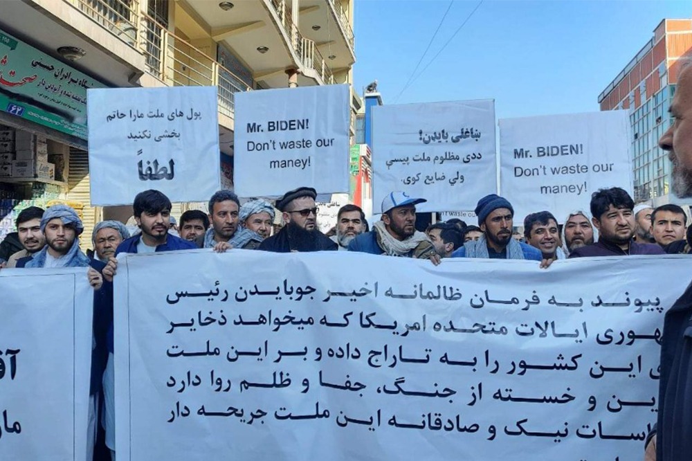 همزمان معترضان در شهر جلالآباد مرکز ولایت ننگرهار نیز، تصمیم جو بایدن را ظالمانه و ناعادلانه خوانده و از جامعه جهانی خواستند تا خواستار آزادی پولهای مردم افغانستان شود. این معترضان تاکید کردند که امریکا به هیچوجه حق مسدود کردن و استفاده از داراییهای افغانستان را ندارد.