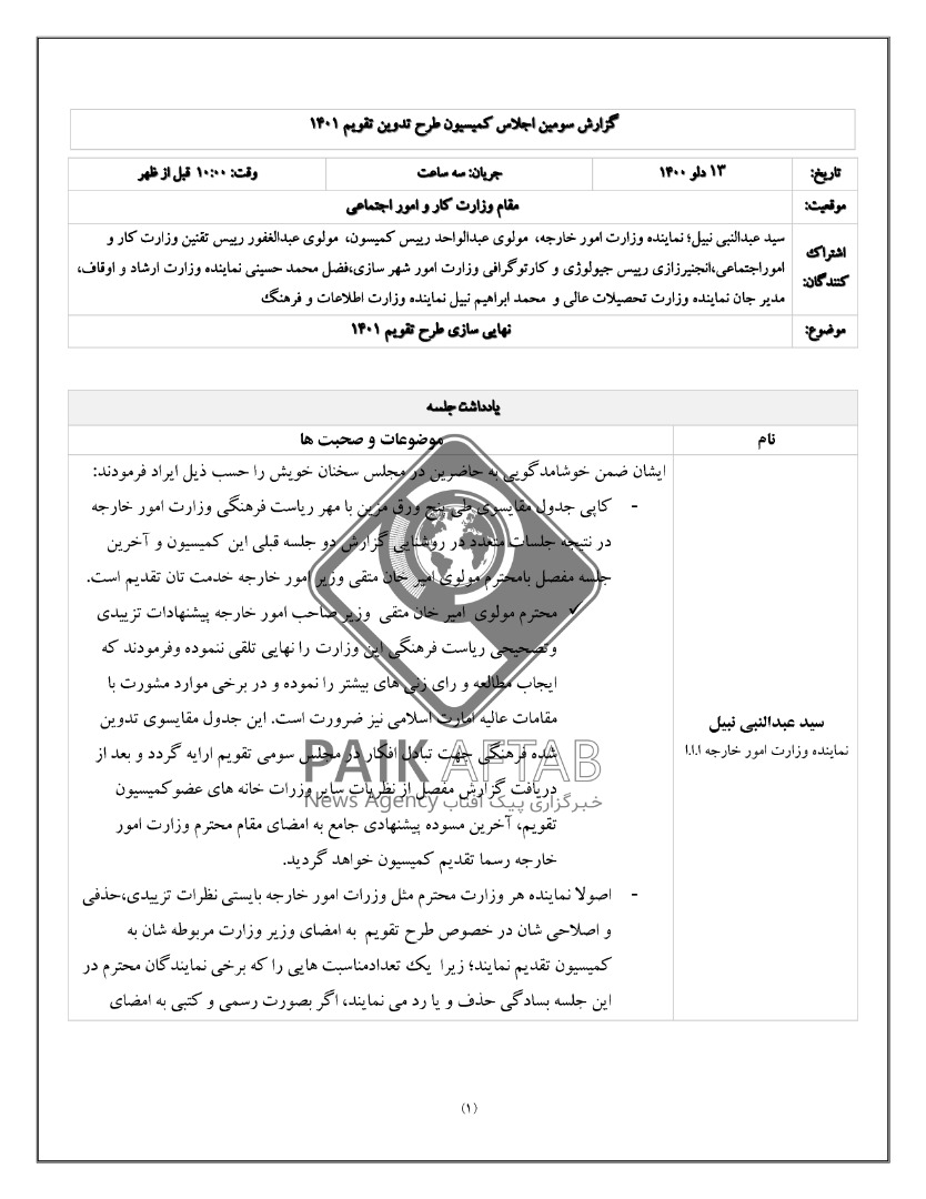 پیکآفتاب: نسخهای پنج صفحهای از طرح تقویم سال 1401 طالبان در اختیار خبرگزاری پیکآفتاب قرار گرفته که به نظر میرسد تدوین کنندگان این طرح، برخی مناسبتهای ملی و قومی را حذف کرده، اما برخی از مناسبتها را نیز به دلیل آنچه «حساسیتزا» خوانده شده، به شکل مشروط پذیرفتهاند.